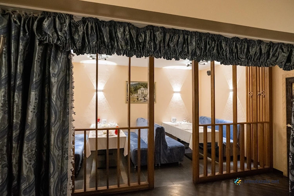 Зал на 1 этаже, расположенный в уютном заведении, предлагает гостям насладиться изысканными блюдами грузинской кухни и великолепным вином в атмосфере тепла и радушия. Посетителей ждет безупречный сервис от доброжелательного персонала, готового сделать всё для создания незабываемого праздника. Повара, следуя традициям грузинского гостеприимства, порадуют вас бесподобными кулинарными шедеврами, а официанты проведут увлекательную экскурсию, раскрывая секреты национальной кухни и обычаев. Здесь каждый гость почувствует себя желанным, ведь его непременно поздравят с праздником, преподнесут комплимент от ресторана и устроят настоящий мини-праздник с песнями и танцами.