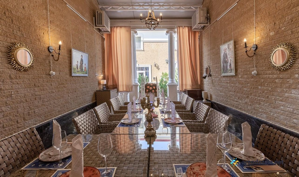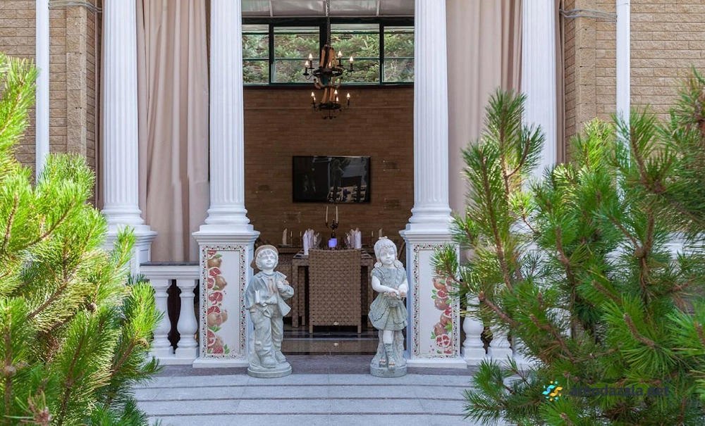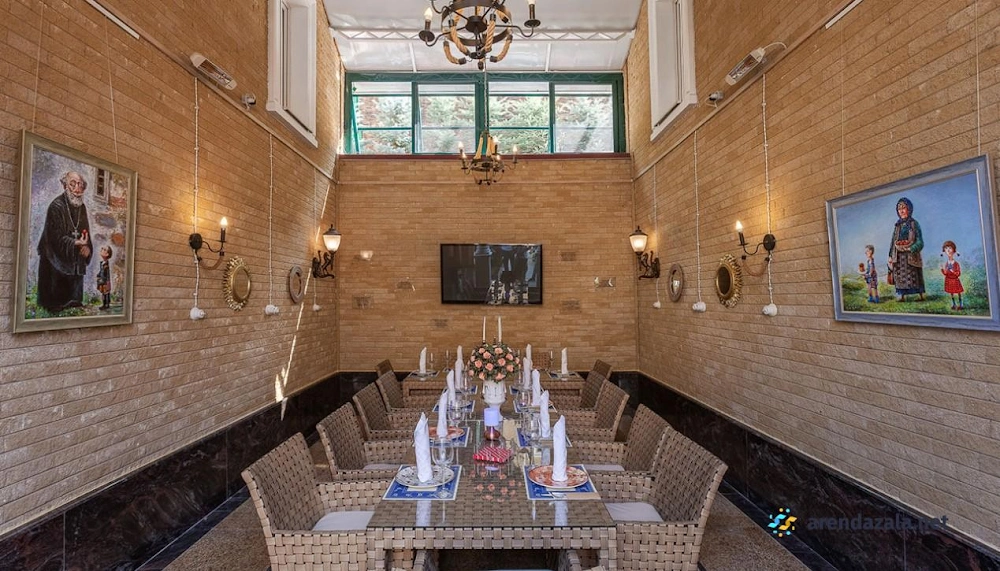 Банкетный зал представляет собой стильное заведение с живописной территорией, оборудованной фонтанчиками, прудиками и беседками. Летом открываются веранды, эстрада для танцев и площадка для отдыха на свежем воздухе, а зимой посетителей ждут уютные залы с камином и мягкими диванами. Заведение радует вкусной едой по доступным ценам, качественным обслуживанием учтивых и аккуратных официантов, а также приятной музыкальной атмосферой.
